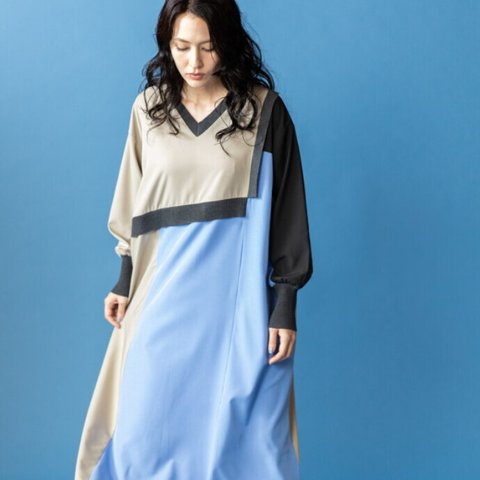カラーブロックやリブ切替で存在感を放つワンピース。