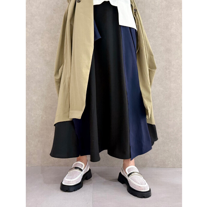 OSMOSISらしい配色デザインに、さりげないカスケードがエッジを効かせるスカート。