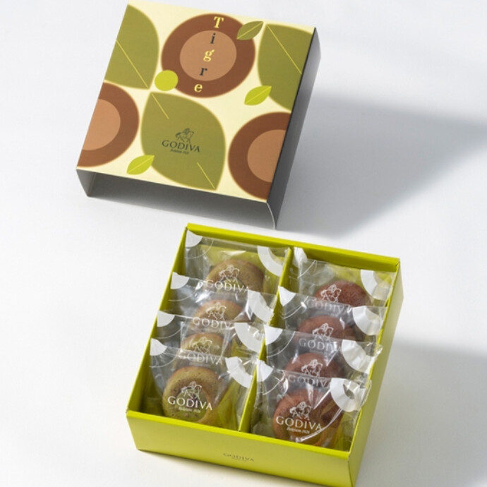 しっとりリッチな「ショコラ」と、なめらかな「抹茶」、カカオの香り豊かにアレンジした2つのティグレが楽しめるアソートメントです。ショコラは口どけの柔らかさがポイントのガナッシュ。抹茶はやさしい甘さの中にほろ苦さがあり絶妙な味のハーモニー。味わいのコントラストと食べ比べの楽しさを一箱に詰め合わせました。