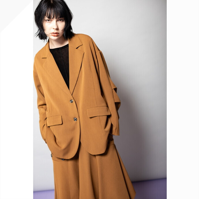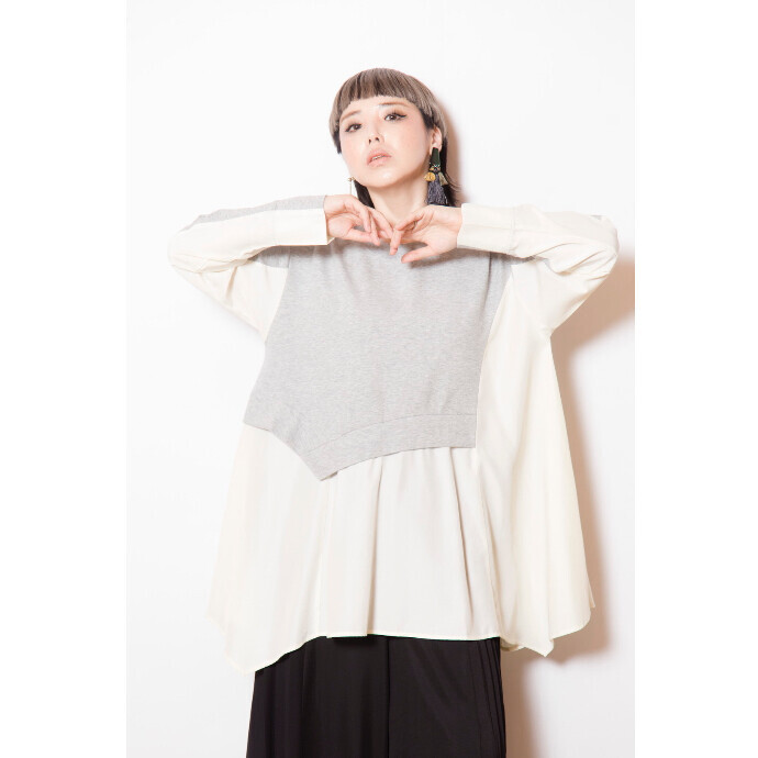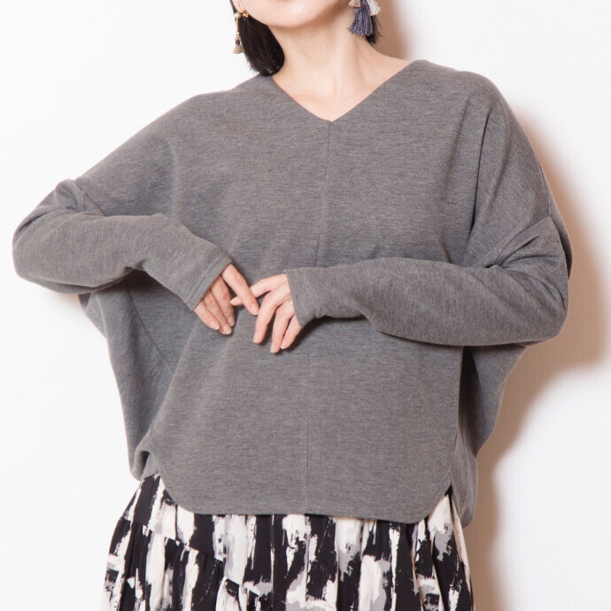 ポンチョの様なオーバーシルエットに前後差をつけて、ややバックロングがモードな仕上がり。