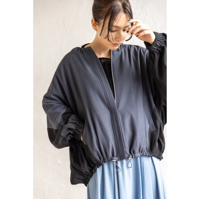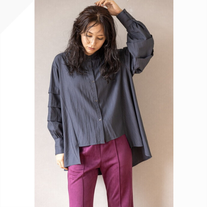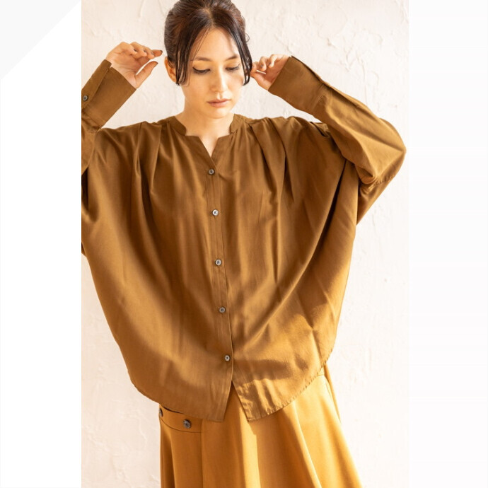 素材について: 伸びが良くスムースな、透けのない軽めのジャージー / マットなツヤのあるブラウス地