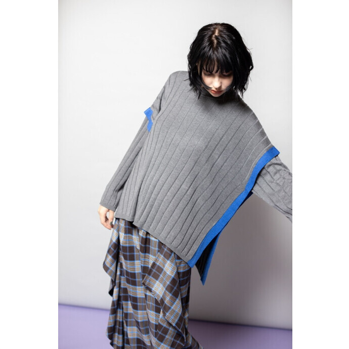 大胆で個性あるシルエットが目を惹くアシンメトリーニットプルオーバー