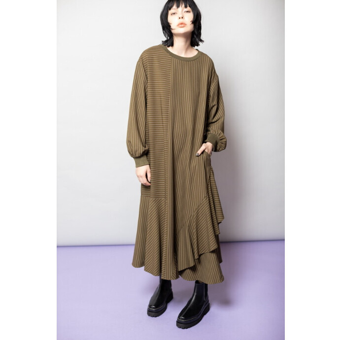 Aラインの女性らしいシルエットは、1枚でもボトムレイヤードも楽しめる。
