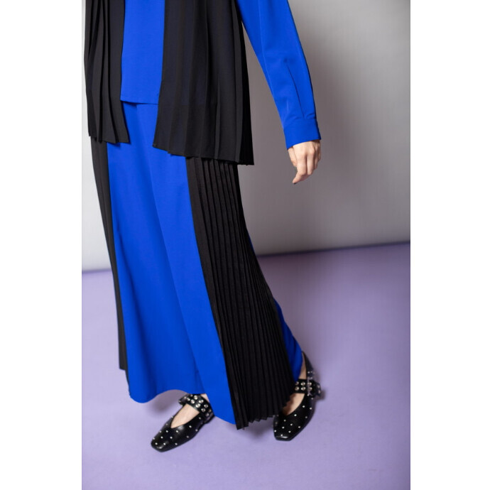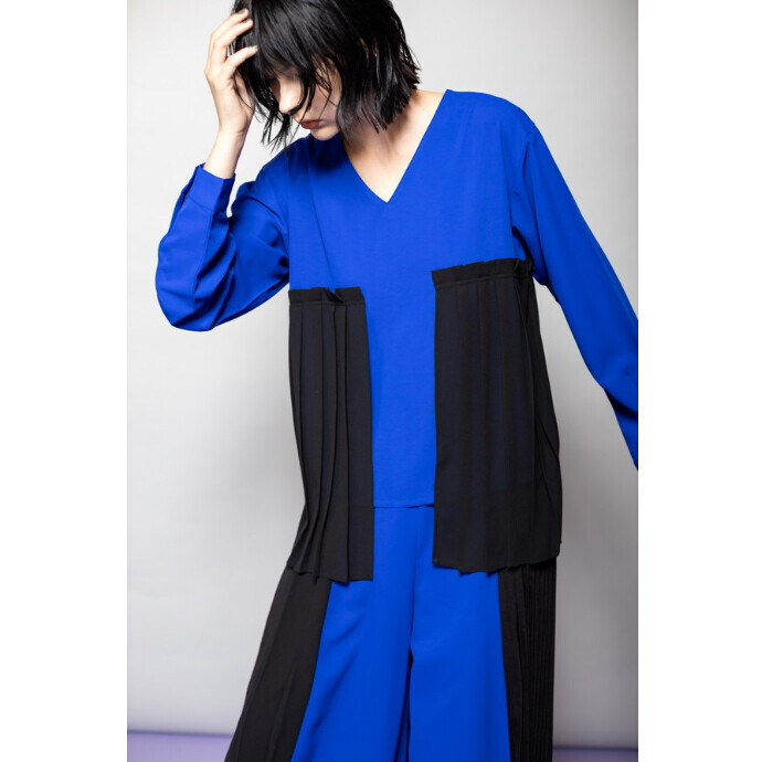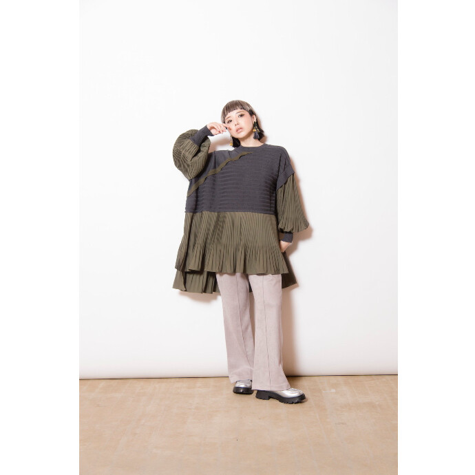 軽快でエレガントなグラデーションプリーツを、ユースフルなリブニットとドッキング。