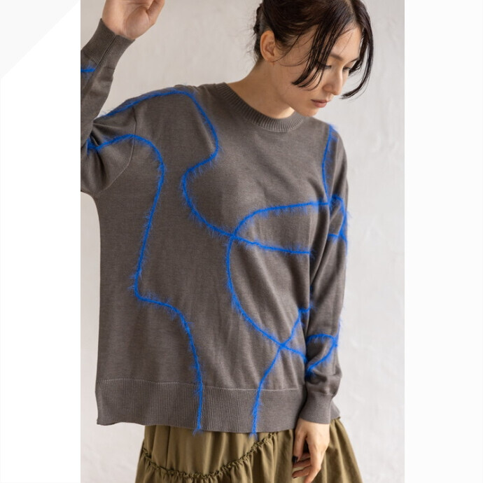 糸だけでなく編地を多様に切替えた、巧妙さが光るニット。