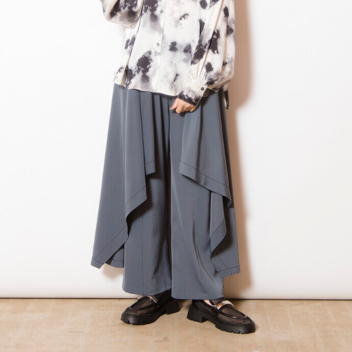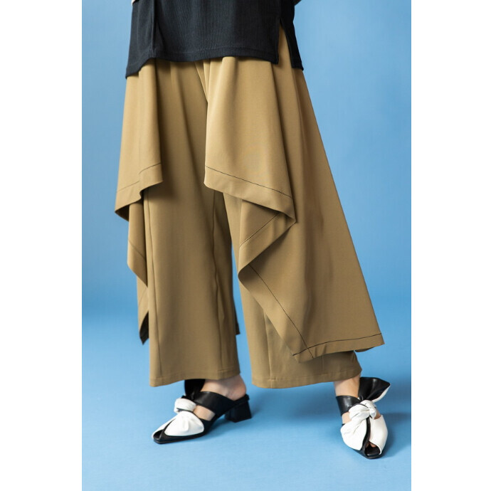 しなやかに波打つラッフルを重ね、立体的なレイヤーがモードな存在感を放つパンツ。