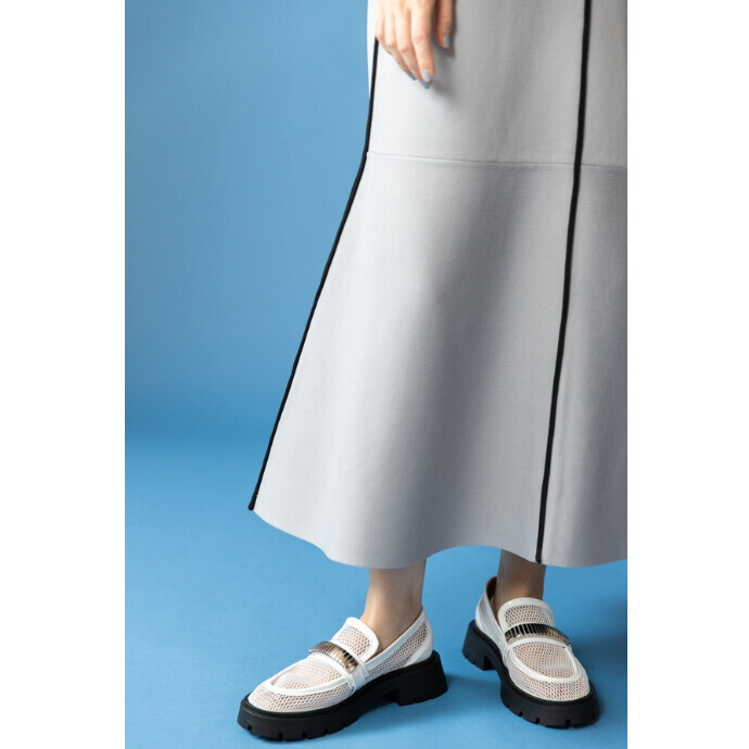 落ち着きのある知的な女性らしさを演出する、ミディ丈のフレアスカート。