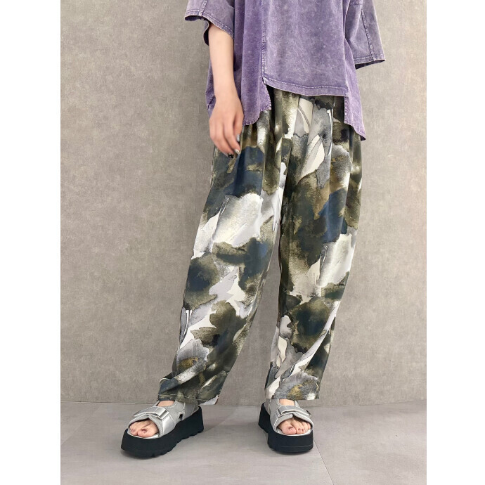 春夏のスタイリングに欠かせないプリントパンツは、水彩タッチなニュアンスが大人っぽいムード。