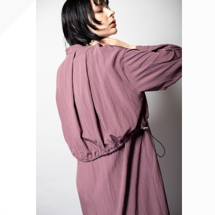リーンなシルエットと、バックギャザーのフワッとしたデザインのギャップが魅力。