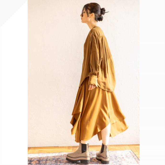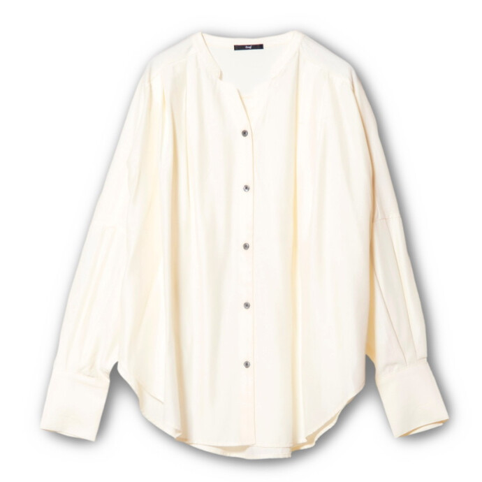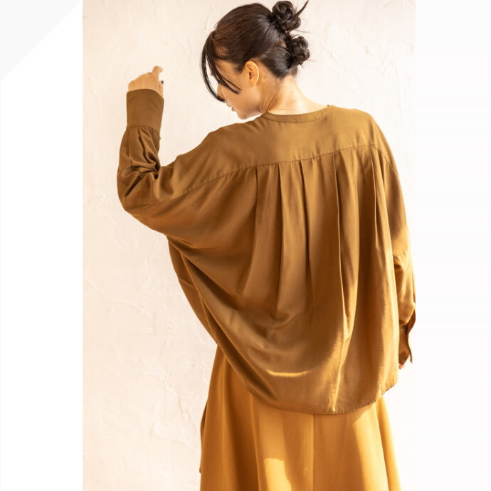 素材について: 表面にハリがありながらも、柔らかく落ち感のあるしなやかなブラウス地