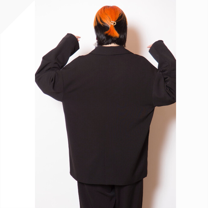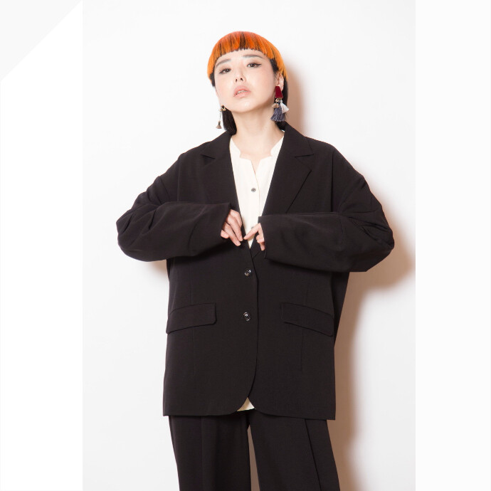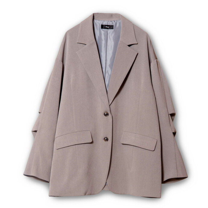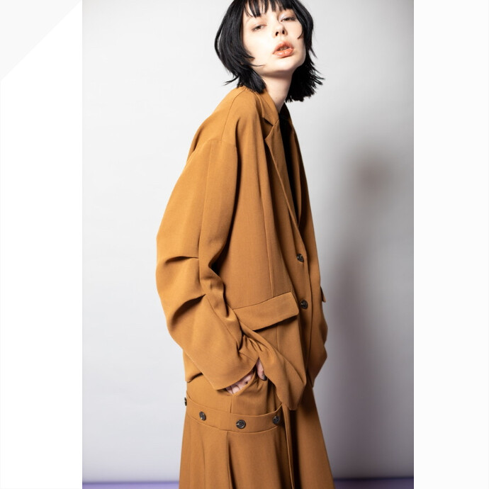 メンズライクなテーラードジャケットは、肘付近のタックに視線を集める。