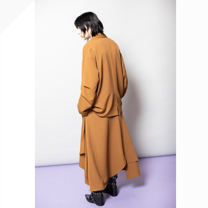 落ち感のあるシルエットで、パワフルな女性らしさを秘めて。