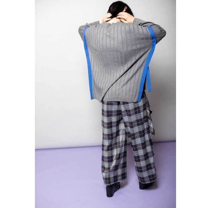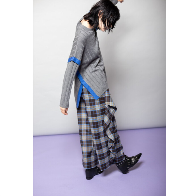 ワイドな身頃ながら、スッキリとしたリブ編みと袖。