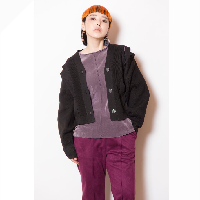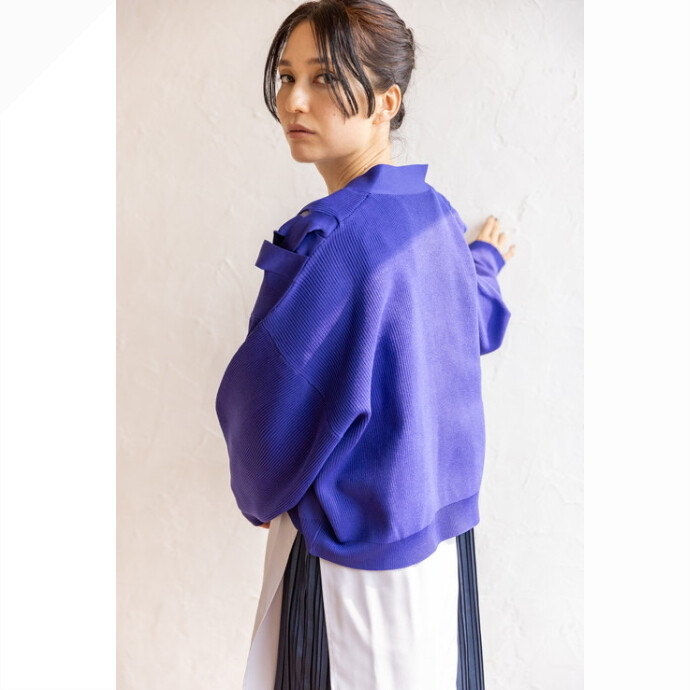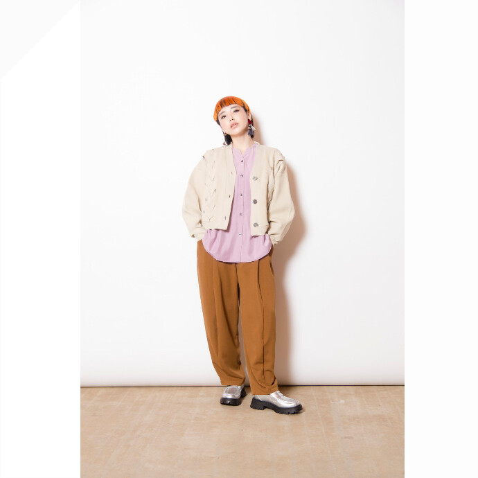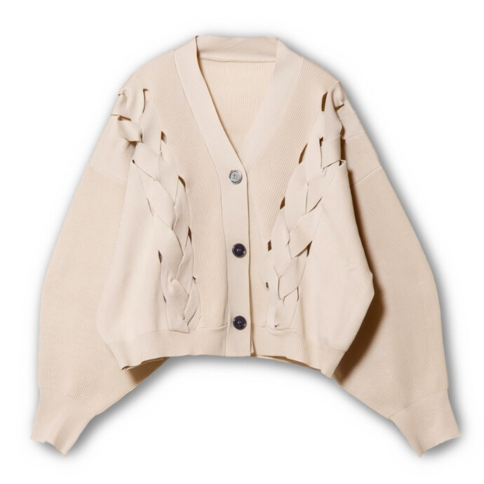 着丈はコンパクトながら存在感を放ち、リボンの様な編み込みがスタイリングに甘さをプラス。