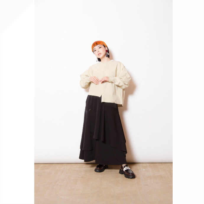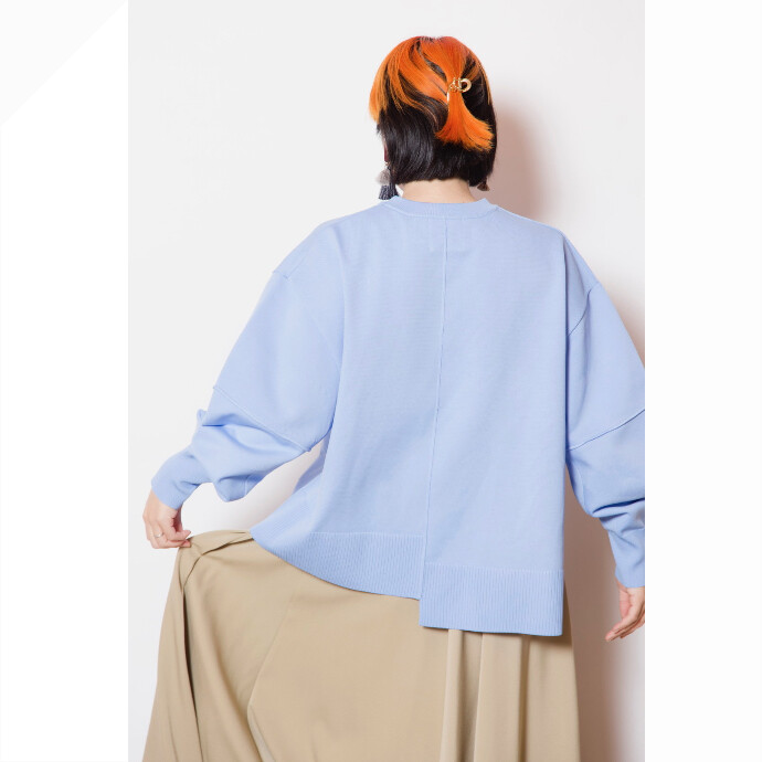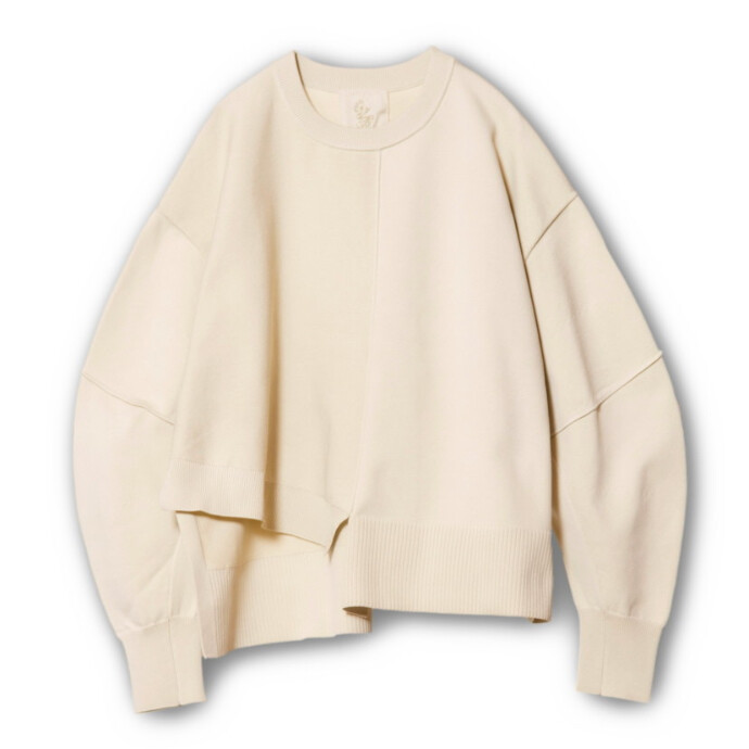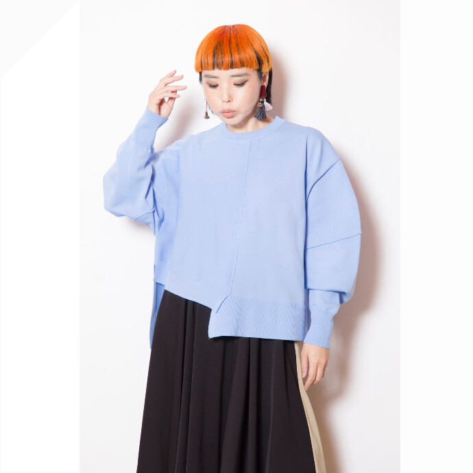 シルエットの面白さと発色の良さが魅力のニットプルオーバー。