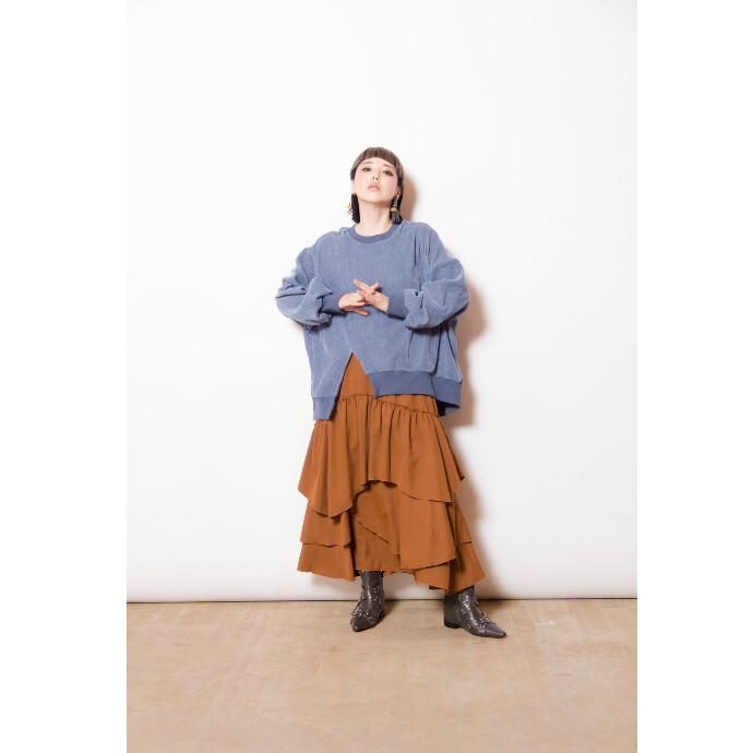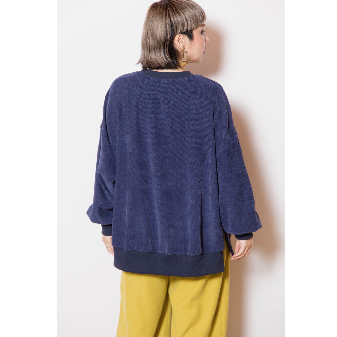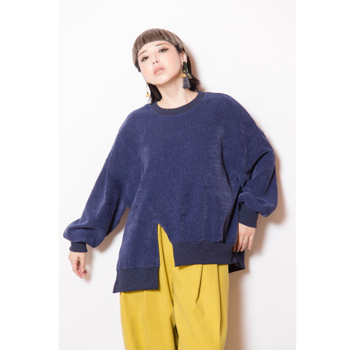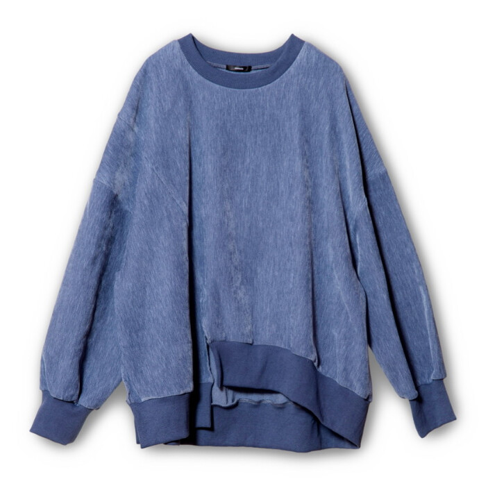 素材について: コーデュロイ風の起毛感とうねのある、中肉のカットソー地