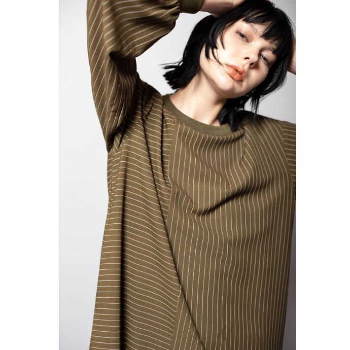 素材について: インナーが響かない厚み、ストレッチの効いた落ち感のある素材