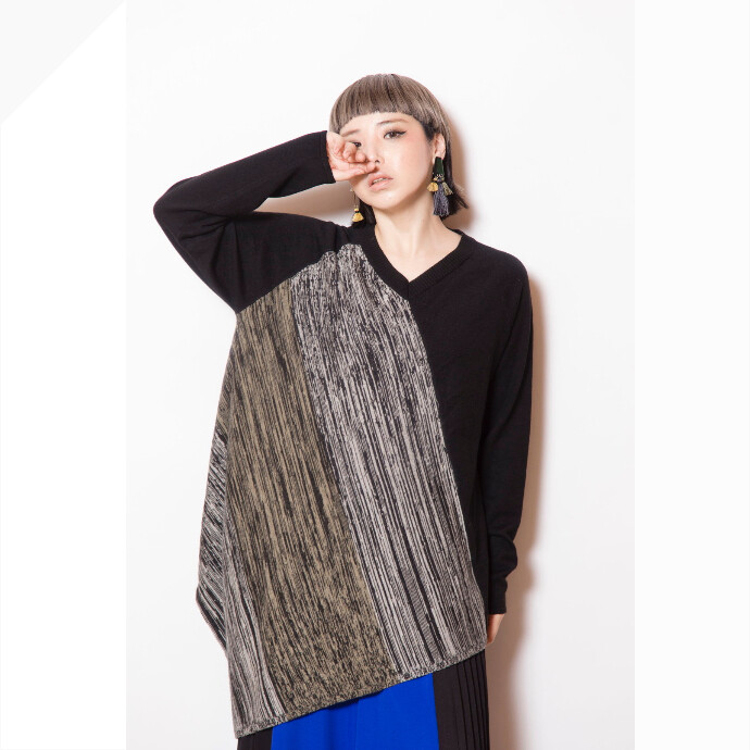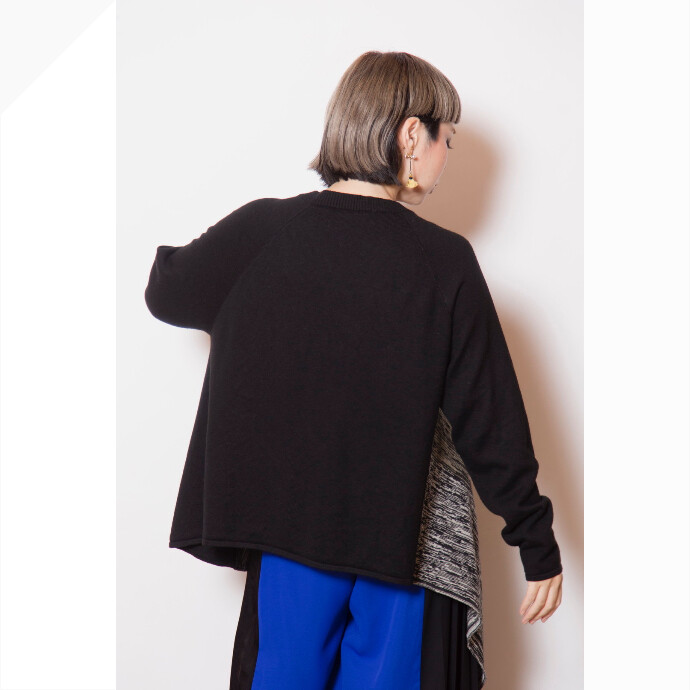 糸だけでなく編地を多様に切替えた、巧妙さが光るニット。