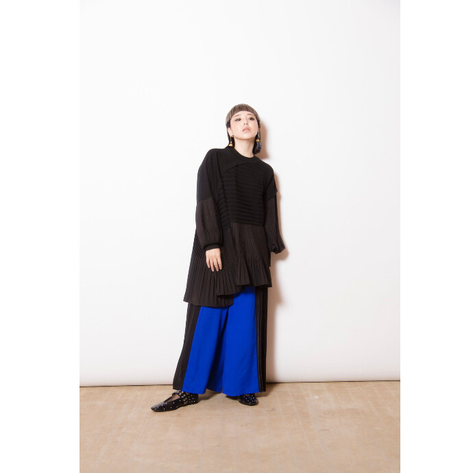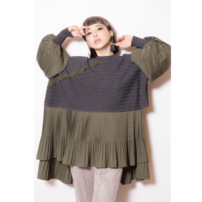 軽快でエレガントなグラデーションプリーツを、ユースフルなリブニットとドッキング。
