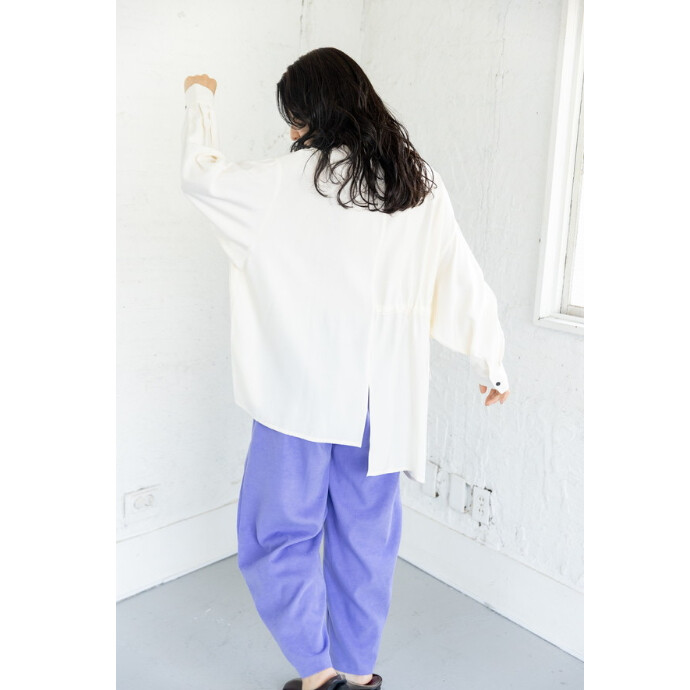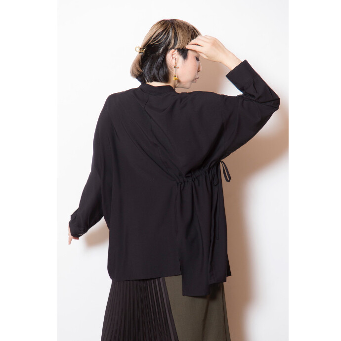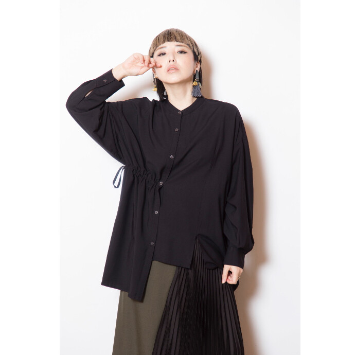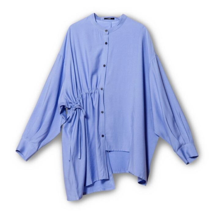 季節を問わず活躍するブラウスは、特徴的なヘムラインとアシンメトリーなギャザーがアクセントに。