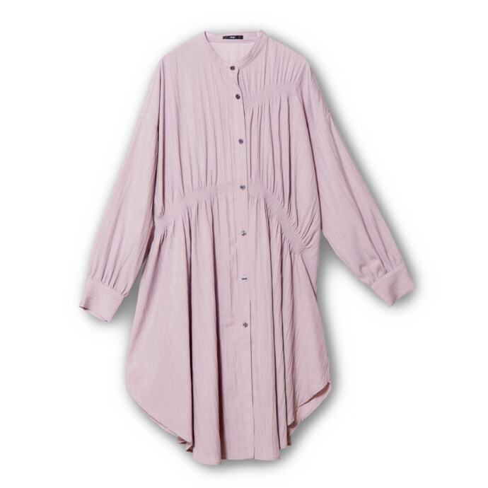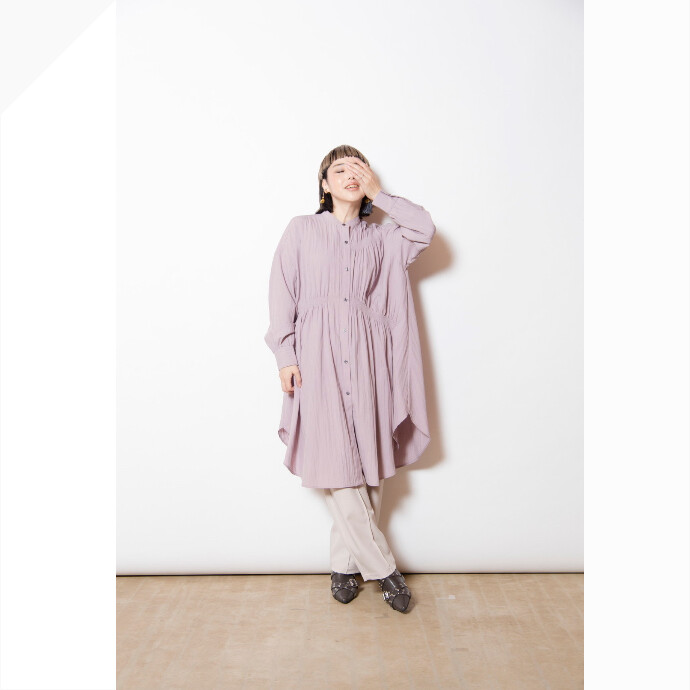 ランダムなシャーリングギャザーが、甘さとモードを両立。