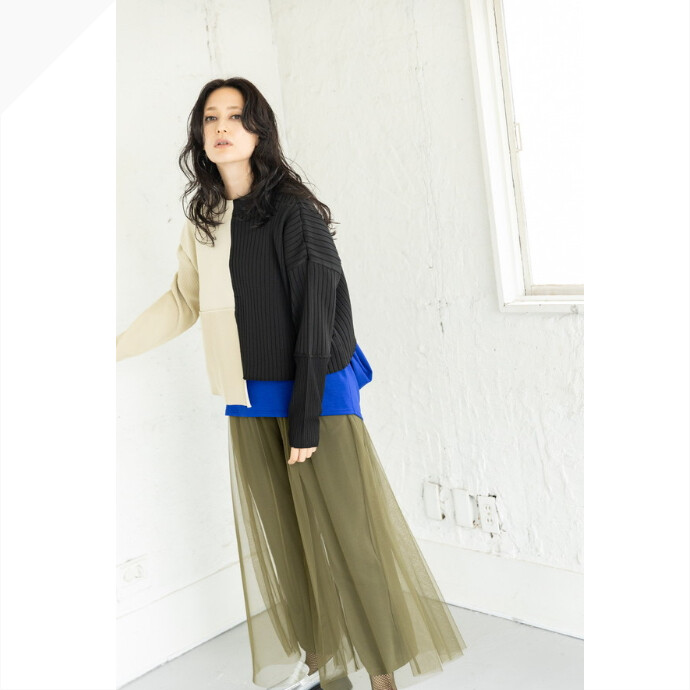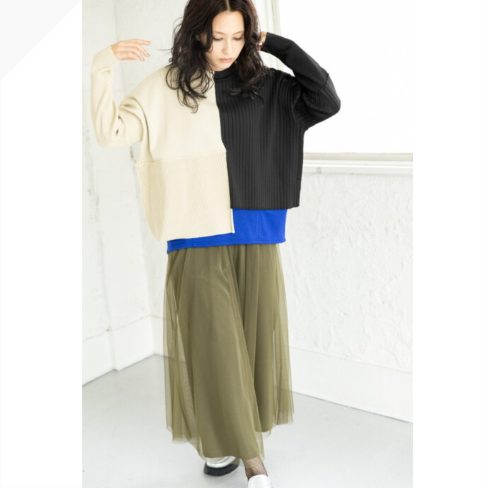 ニットやアウターなどが重たい冬こそ、ギャップのあるシアー素材が好相性。