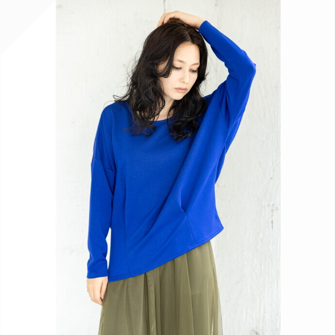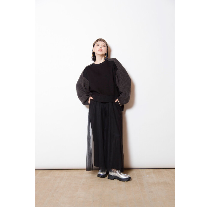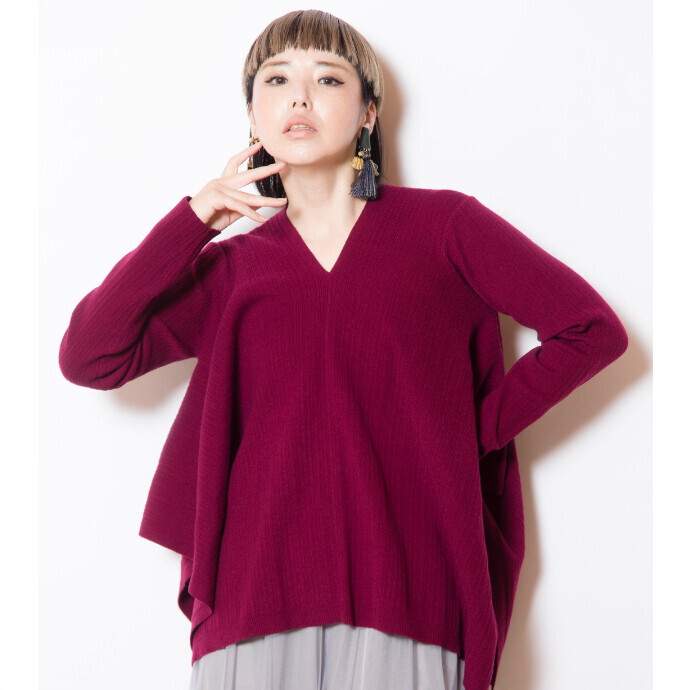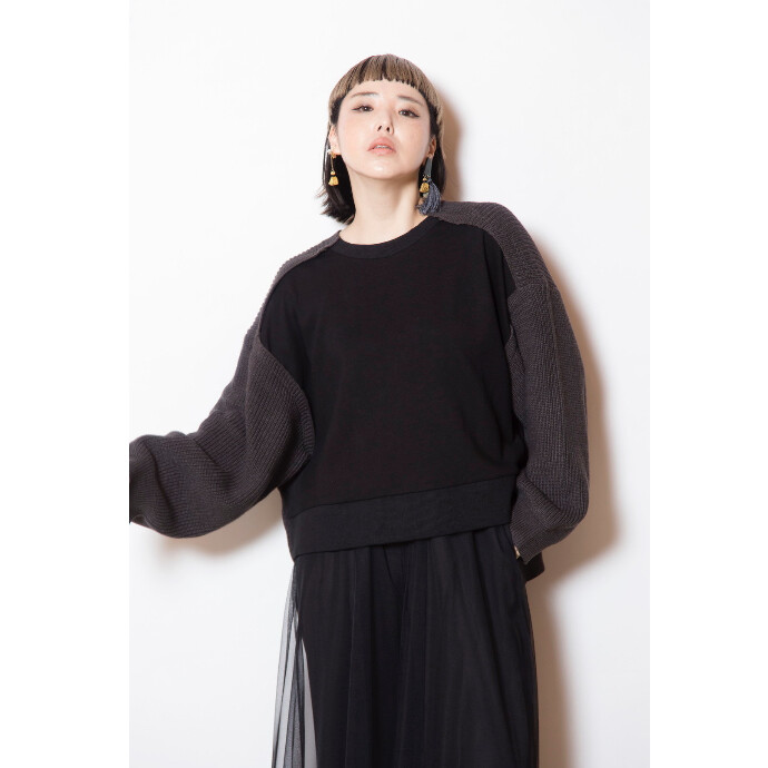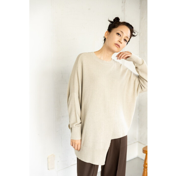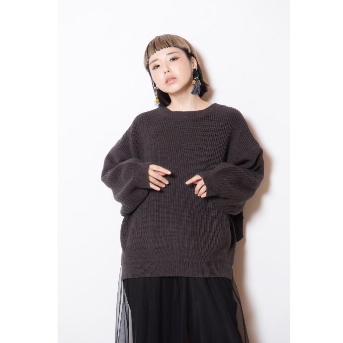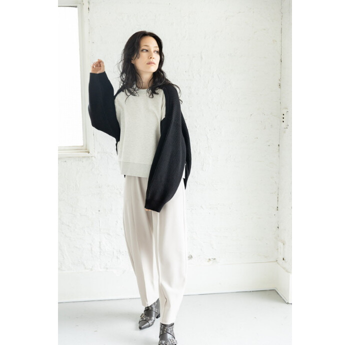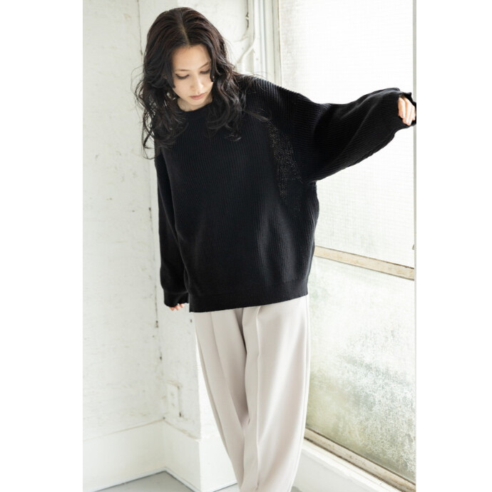 カジュアルなラグラン風のスリーブを、ニットで作った大人ストリートなプルオーバー。