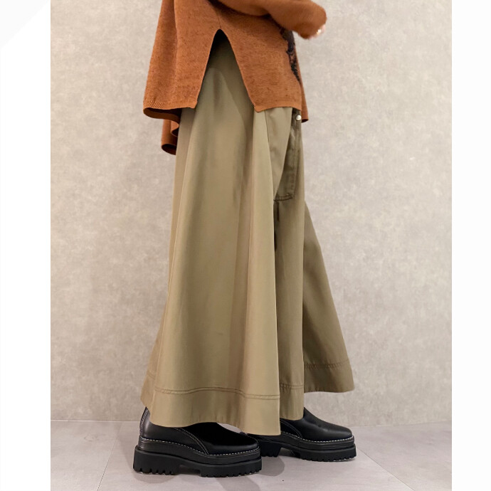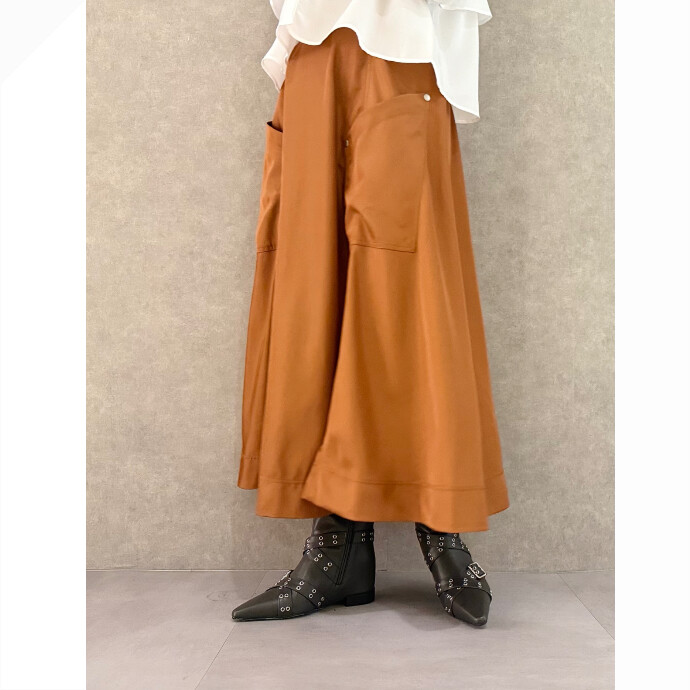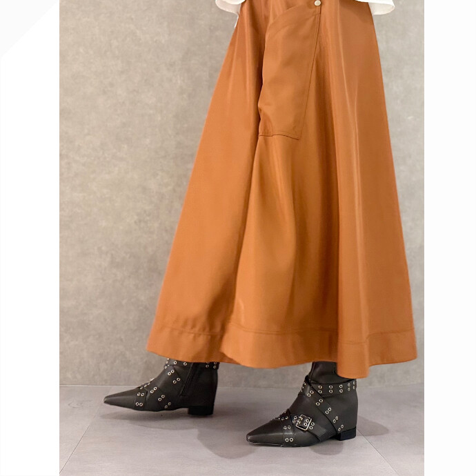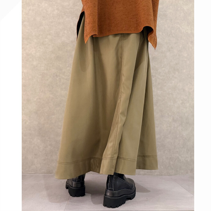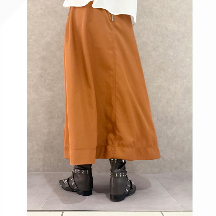 落ち着きのある知的な女性らしさを演出する、ミディ丈のフレアスカート。