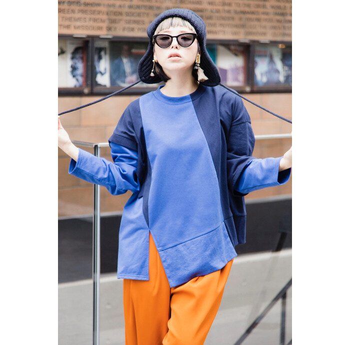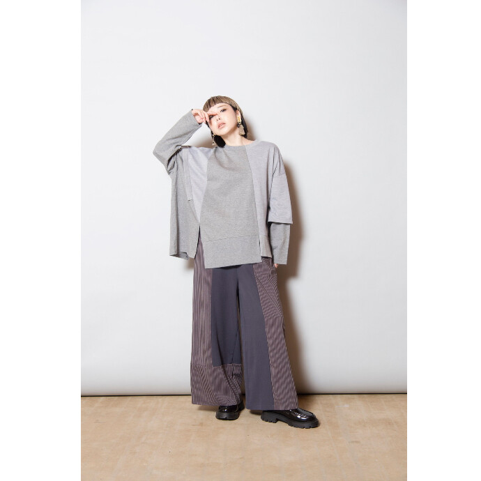 さり気ないリブのアクセントや袖のレイヤードで、1枚でも見劣りしないデザインカットソー。