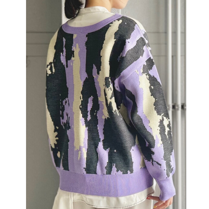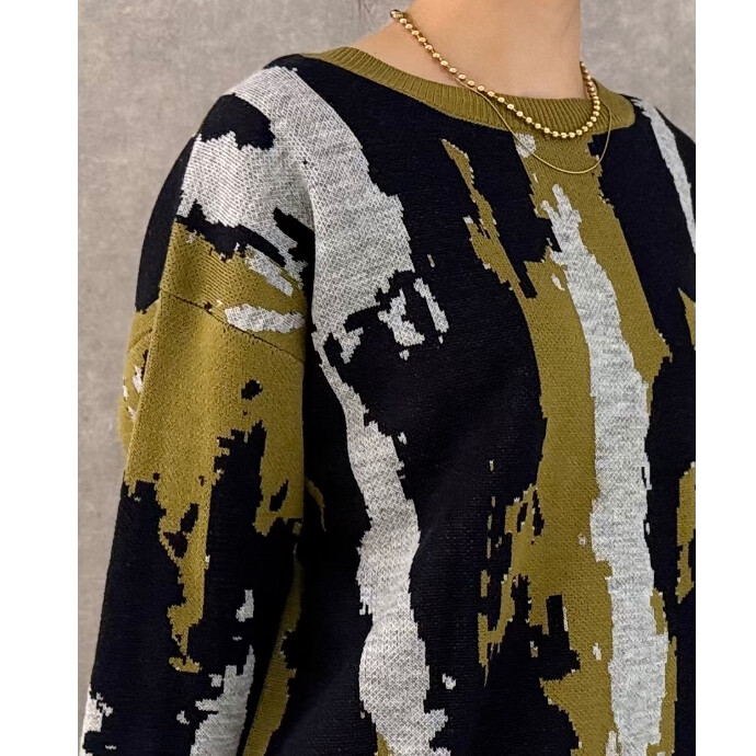 OSMOSISらしいペイント風ジャガードが、スタイリングのキーになるプルオーバー。