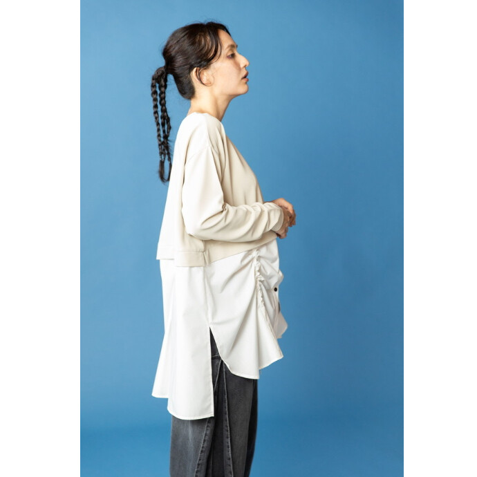 1枚でサマになるOSMOSISらしいフェイクレイヤードデザイン。