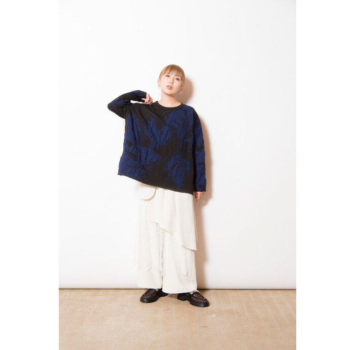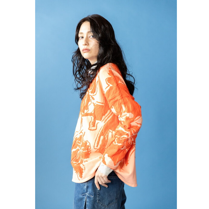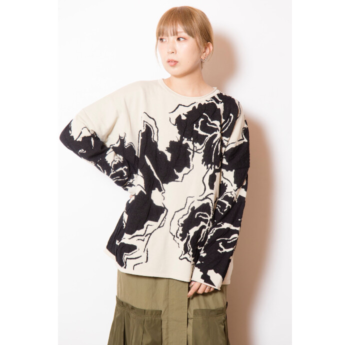 大胆なジャガードモチーフがどこかレトロな雰囲気に。