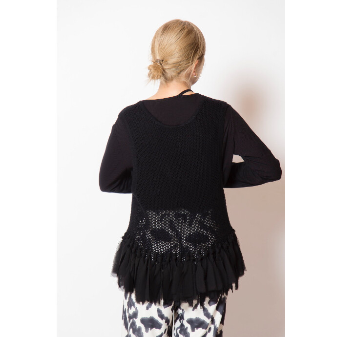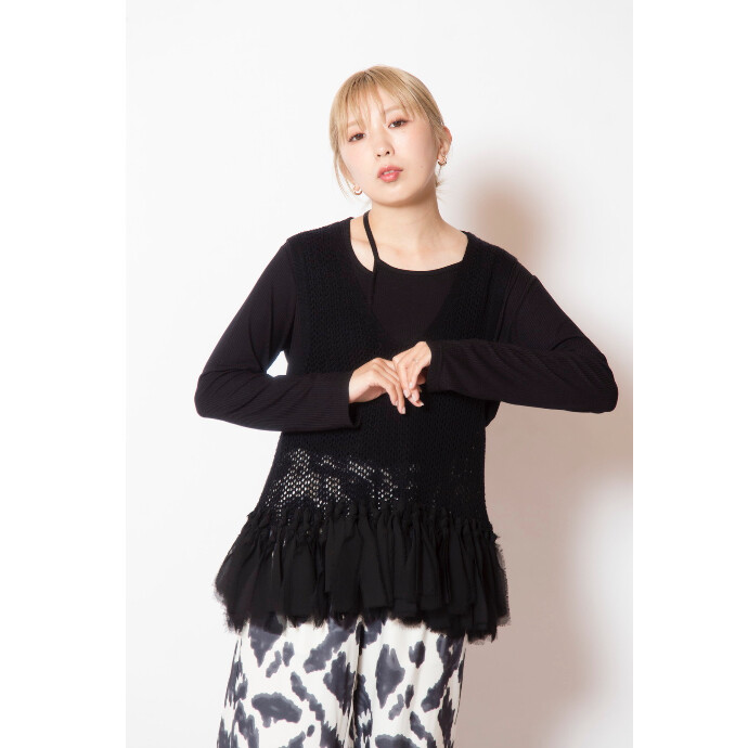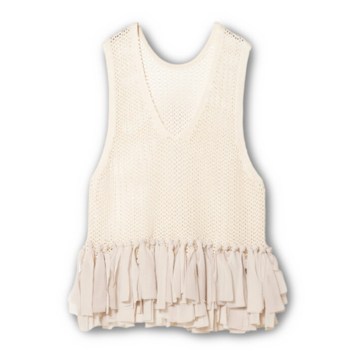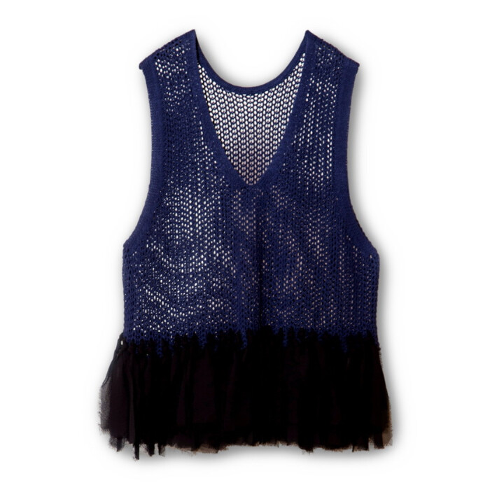 スポーティーなメッシュベストに、デコラティブなフリンジが小気味よいアクセント。