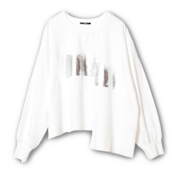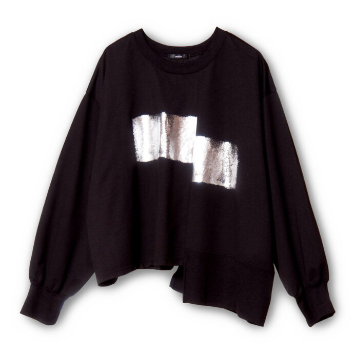 ミニ裏毛のカジュアルなプルオーバーにエッジの効いた箔プリントをON。