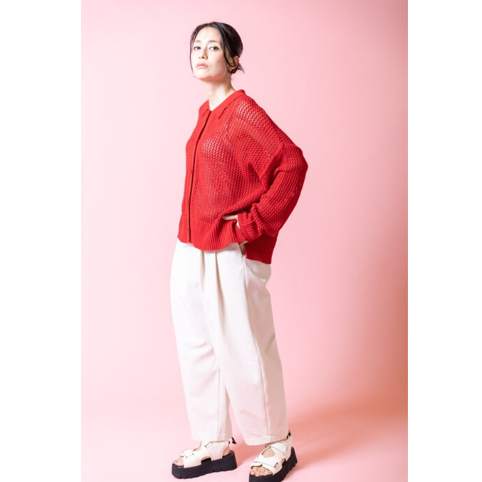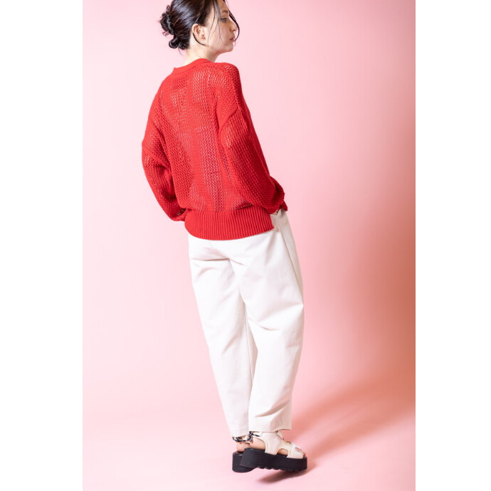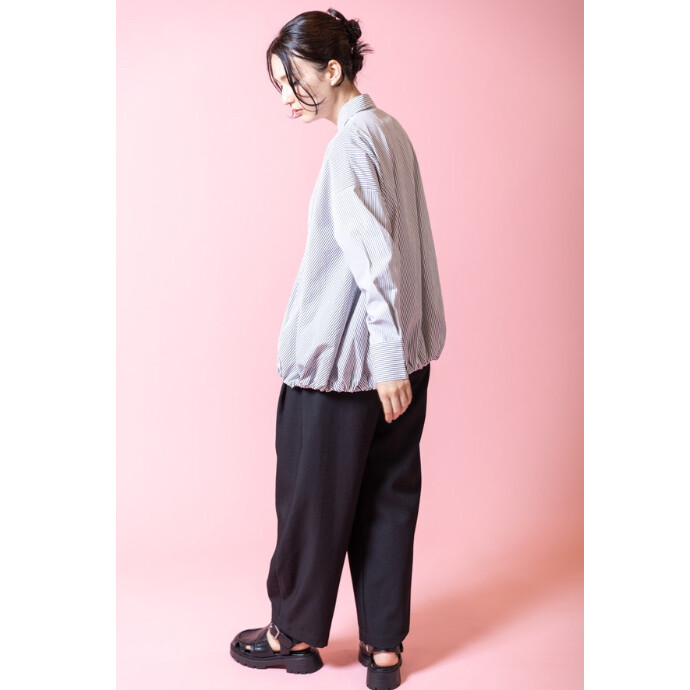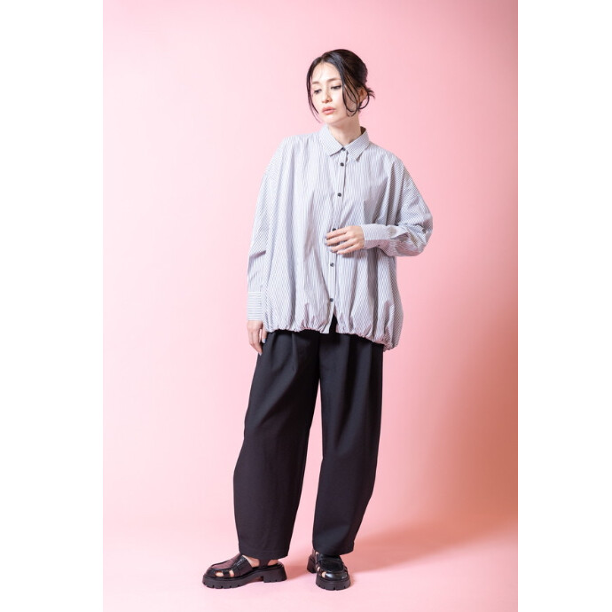 引き続きトレンドのカーブラインパンツは、シワになりにくいツイル生地を使用し、シルエットをキープ。