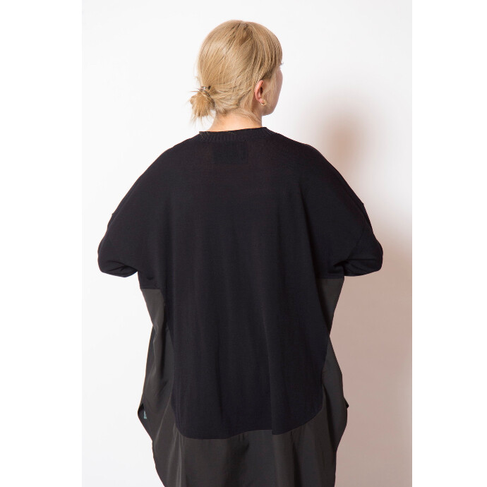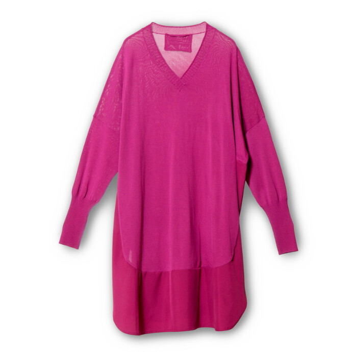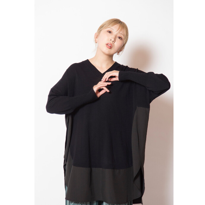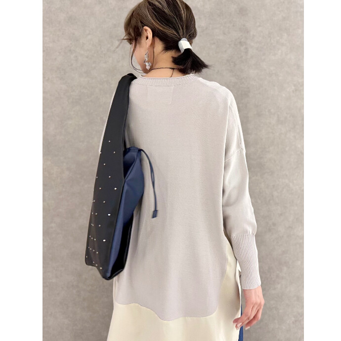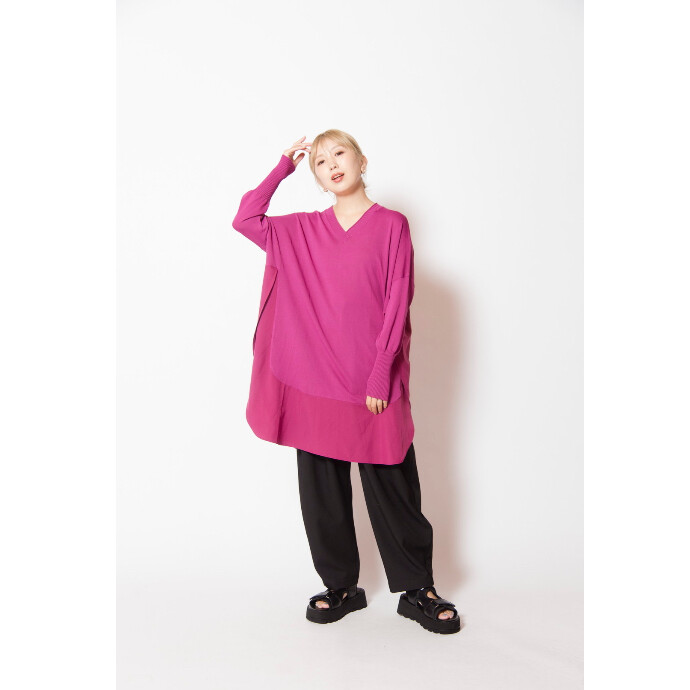 長めのリブ袖やヘムデザインから生まれるスリットで、オーバーサイズに見えても着痩せ効果の高い一枚。