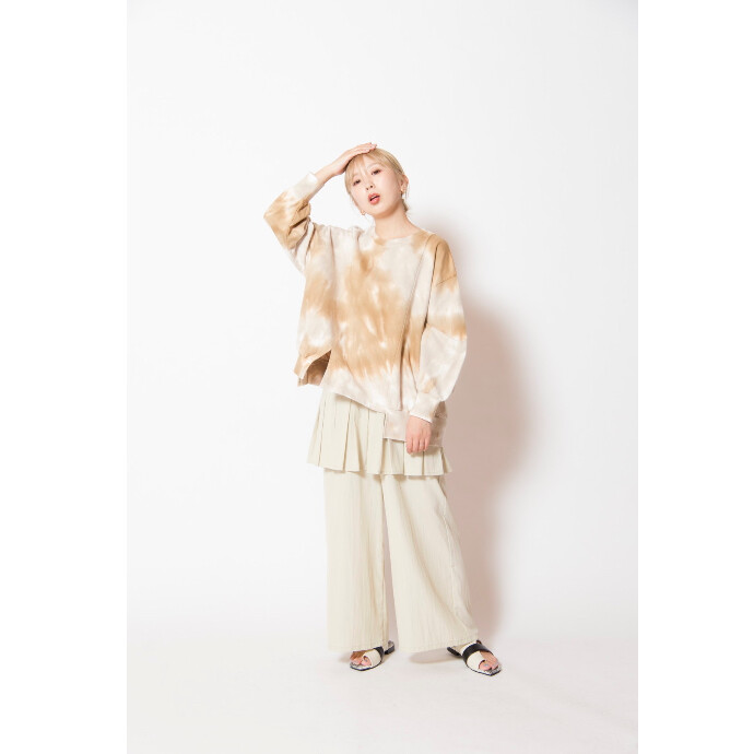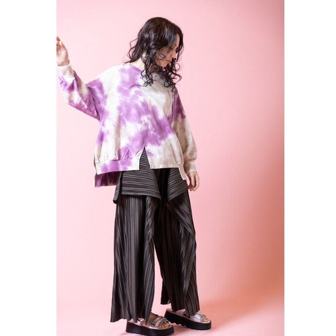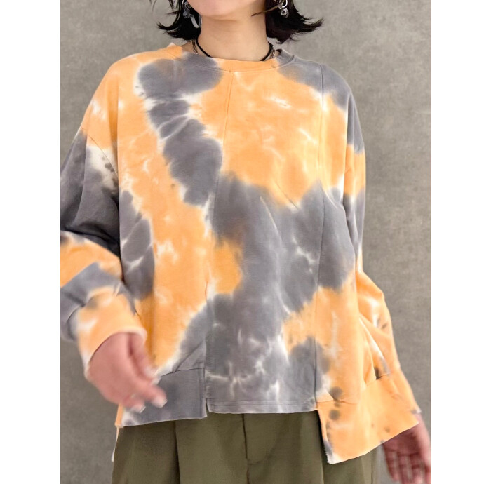 開放的なムード漂うタイダイを、程よく落ち着かせたカラーマッチで仕上げたスウェット。
