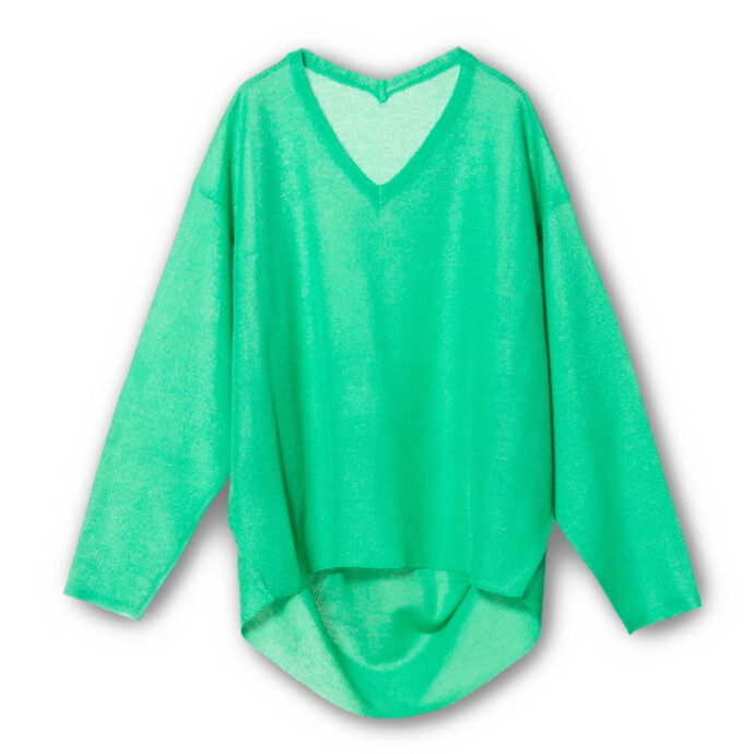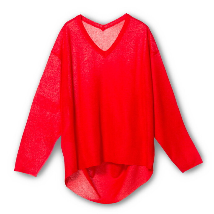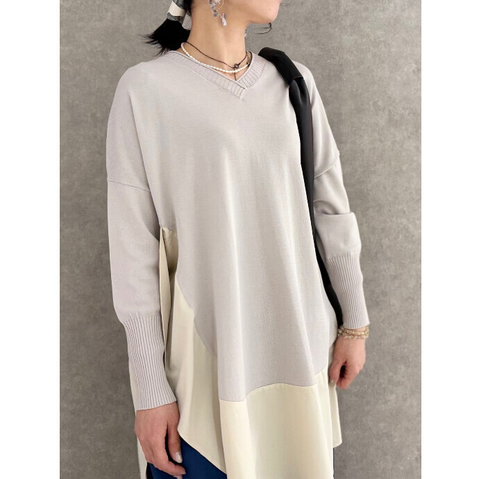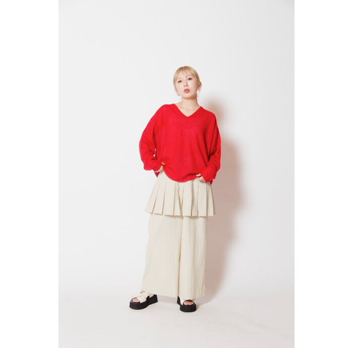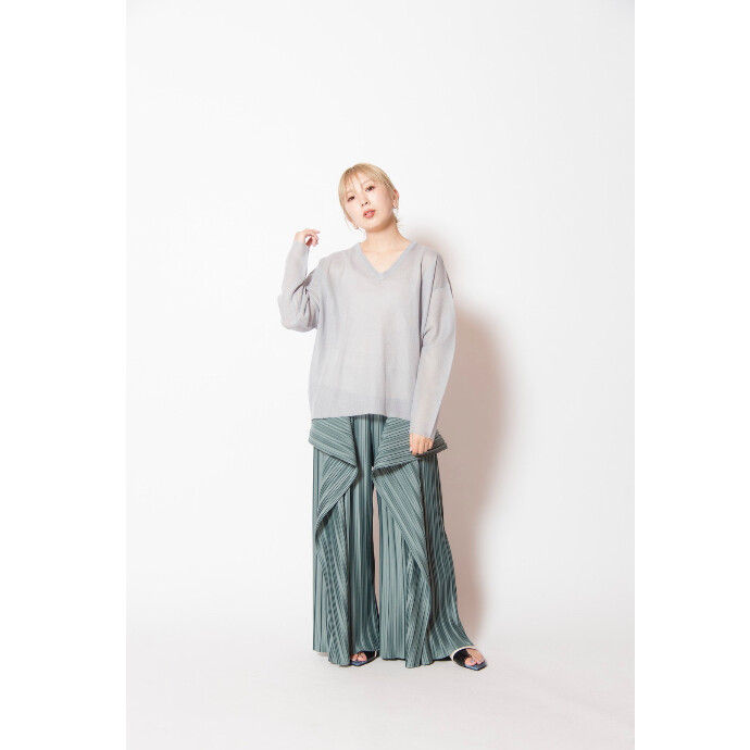着回し力抜群なシンプルなVネックニットは、さりげないシアー感で女性らしく。