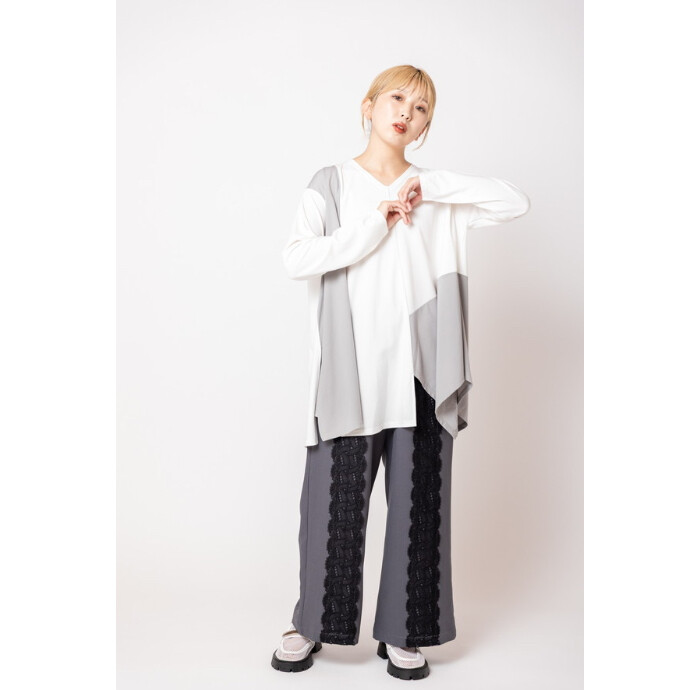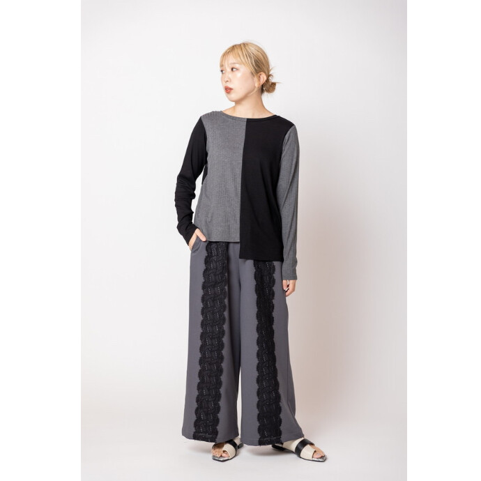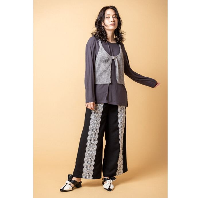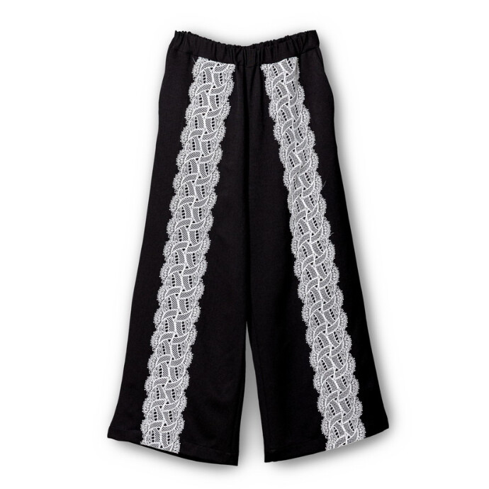 クラシカルなレースラインが、シンプルなパンツをエレガントに格上げ。