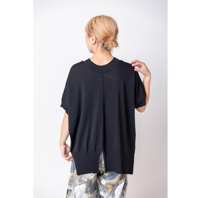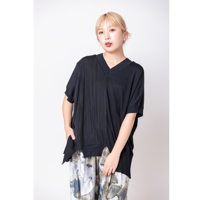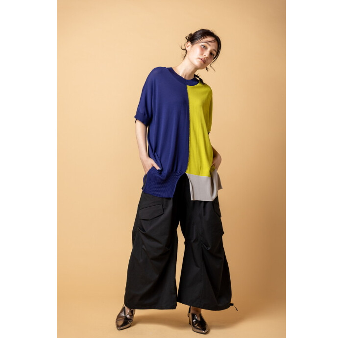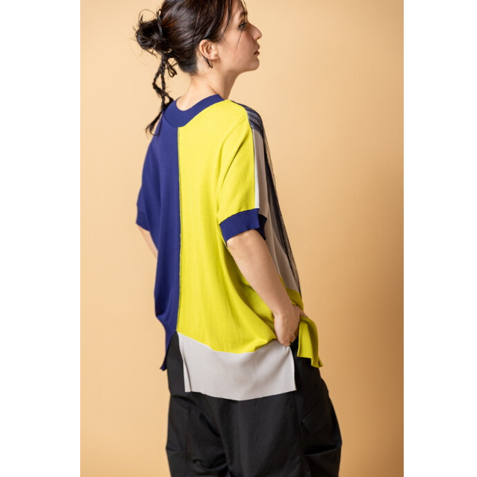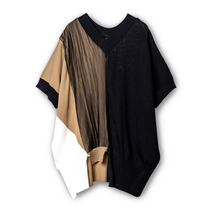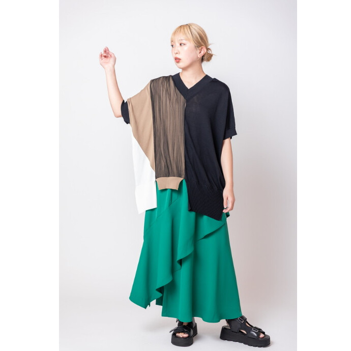 アイコニックな切替ニットに、繊細なチュールをレイヤード。
