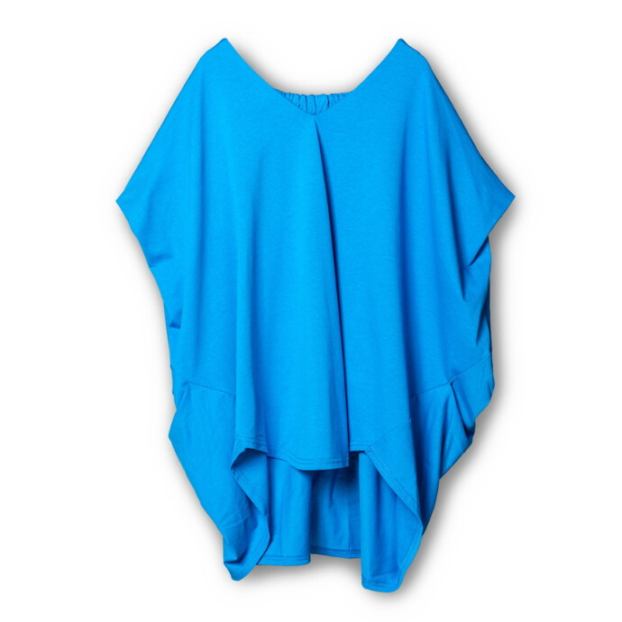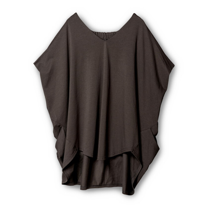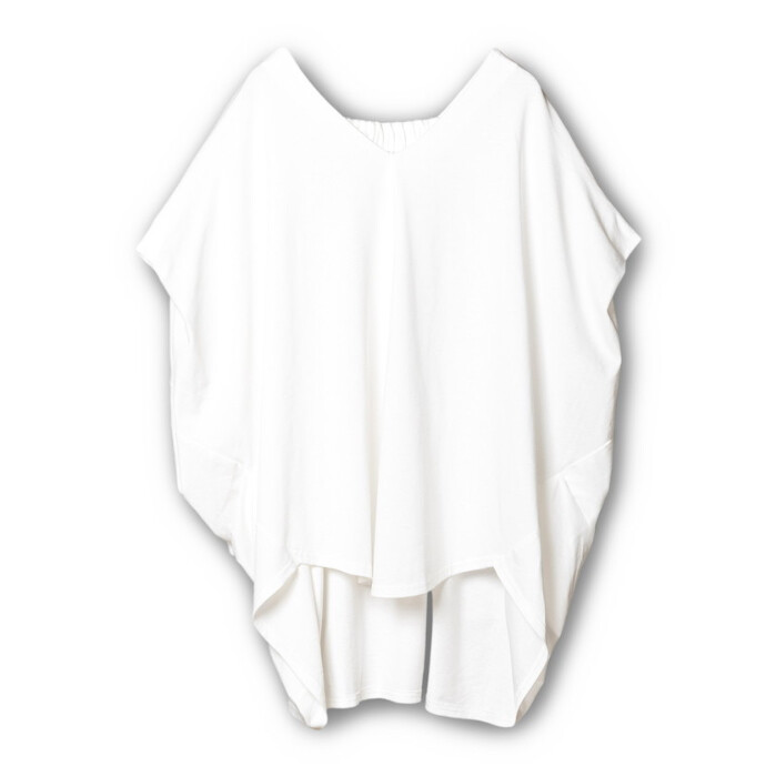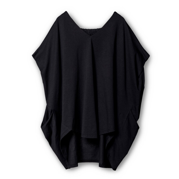 Vネックにドレープ、バックギャザー。