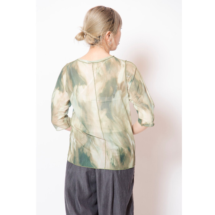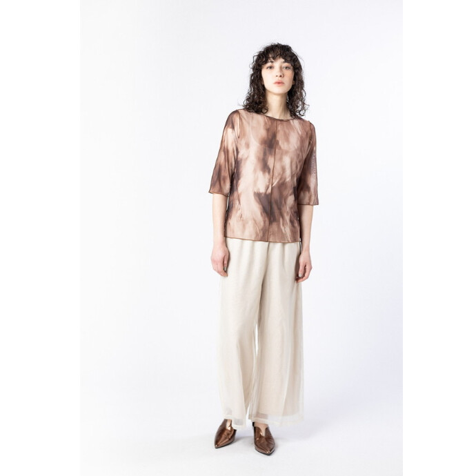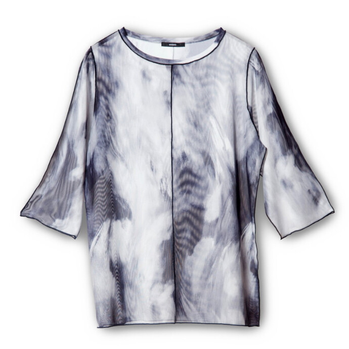 インナーとして着ても存在感を放つニュアンスプリントが、軽やかなシーズンムードを高めるアクセントに。