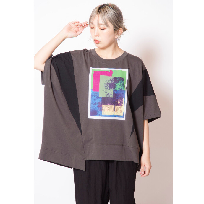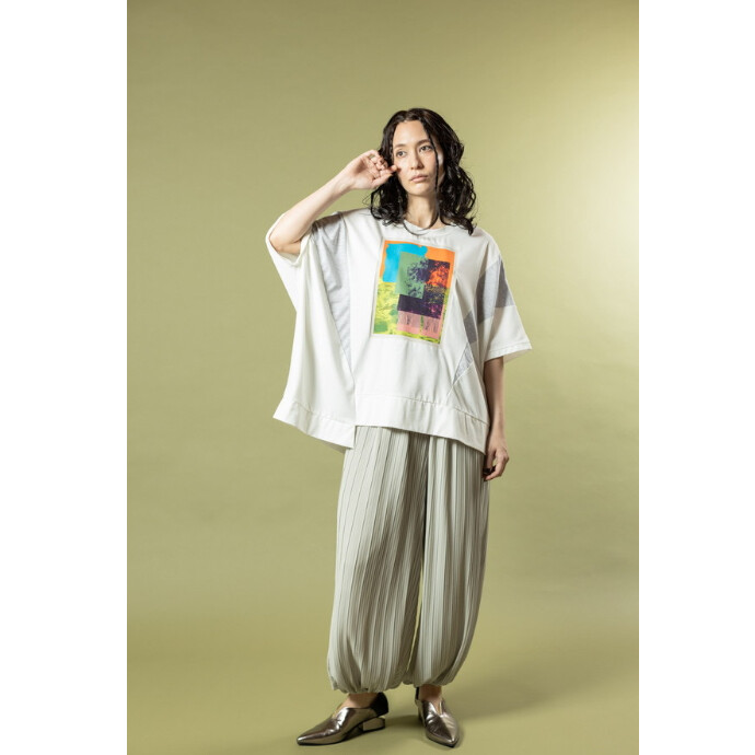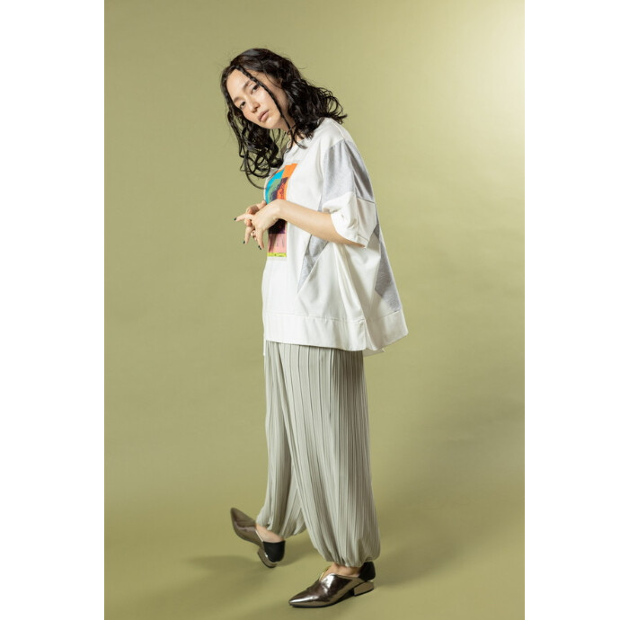 ゆるさのあるシルエットながら、計算された切替デザインでシャープな印象に。