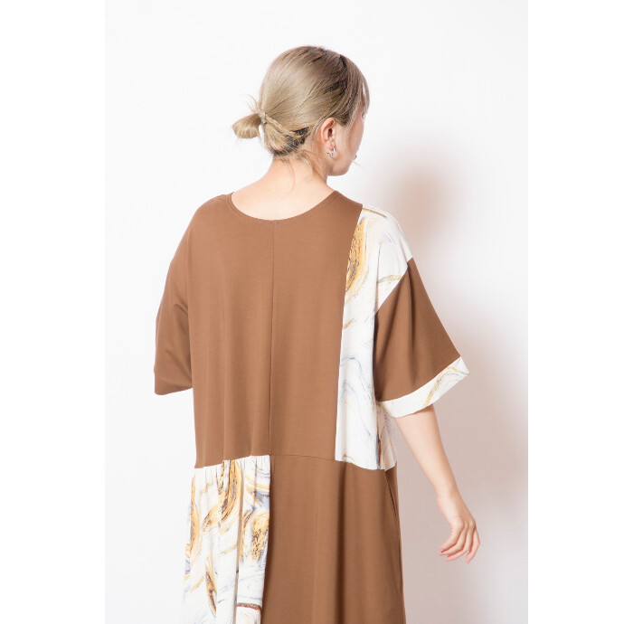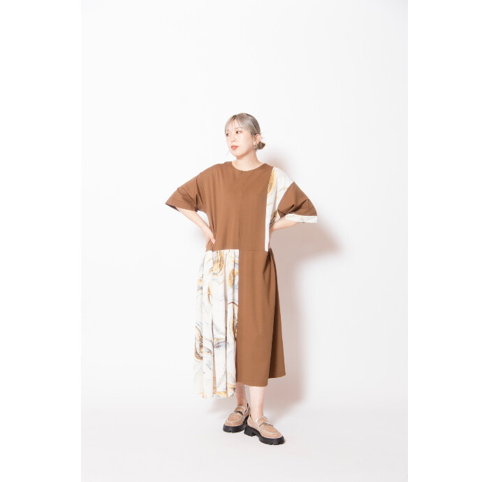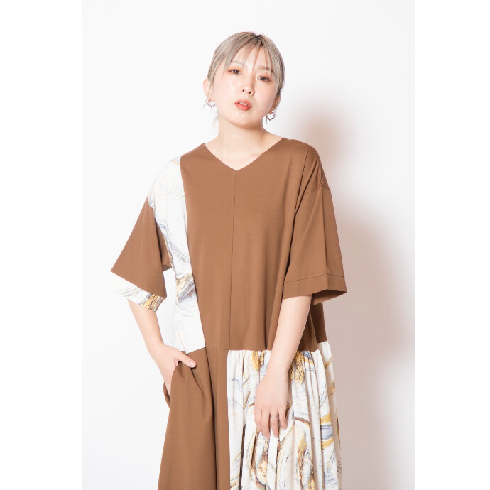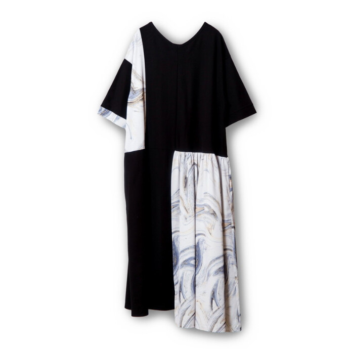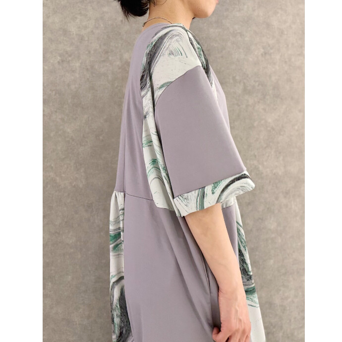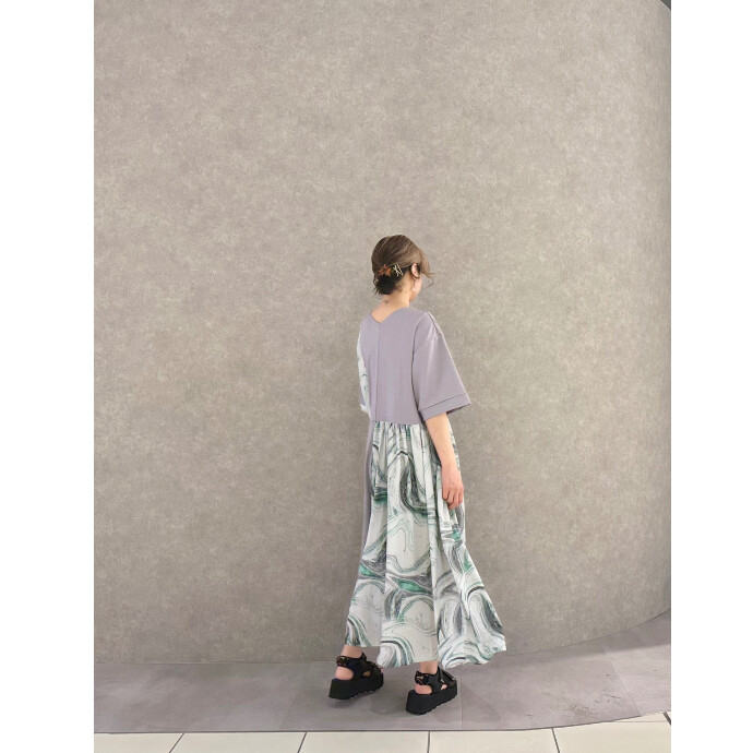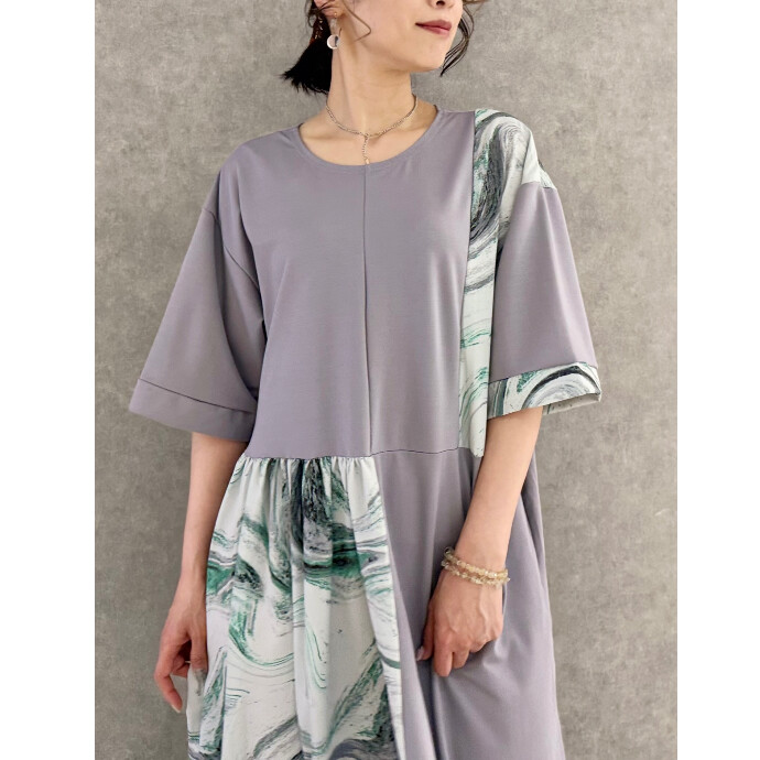 初夏へ向けて活躍するTシャツワンピースに、滲むようなマーブルプリントをドッキング。