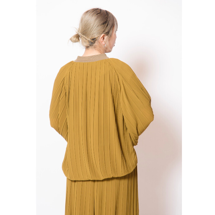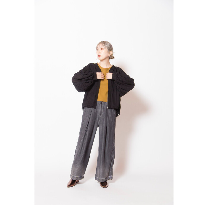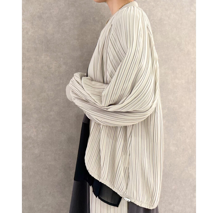さらりとした素材のプリーツが涼感を添え、バルーンフォルムにさりげないシャープさをプラス。