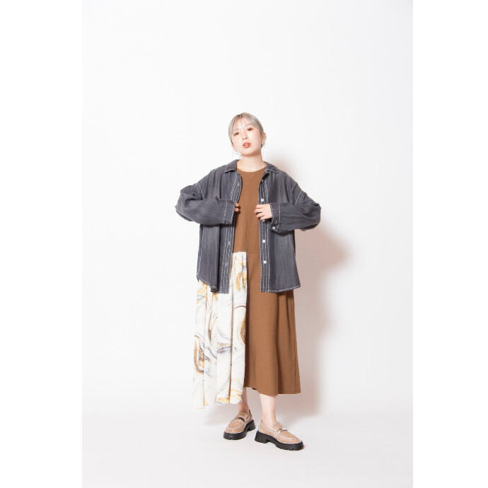 カフスボタンでシルエットに変化をつけ、ルーズながらも計算されたバランスに。