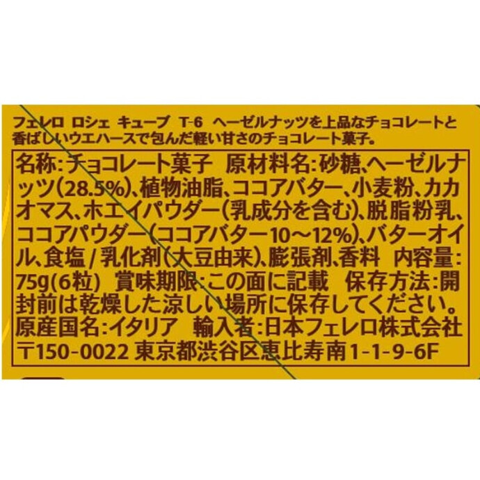ヘーゼルナッツとチョコレート、香ばしいウエハースのハーモニーが楽しめるロシェのチョコレート。