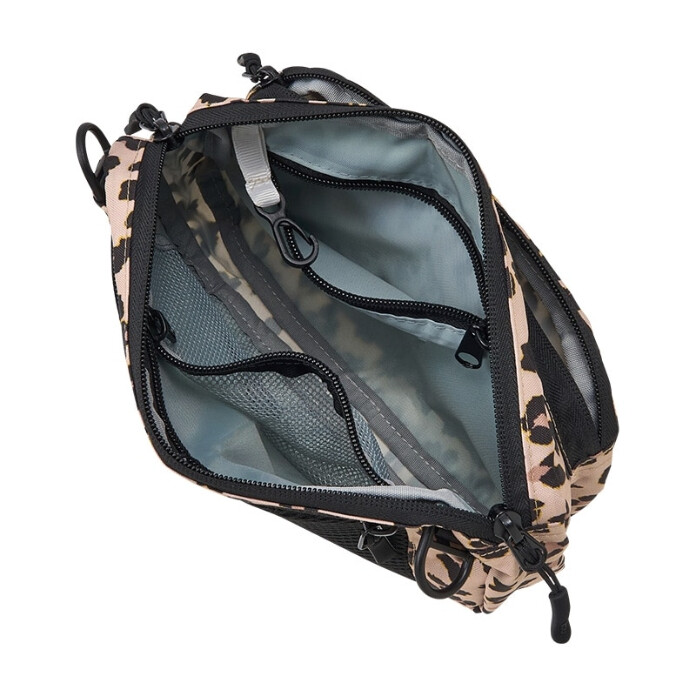 ショルダーバッグとしてもウエストポーチとしても使える2wayタイプで、表面と背面にも収納性を高めるファスナー付きポケットがあるのも便利です。