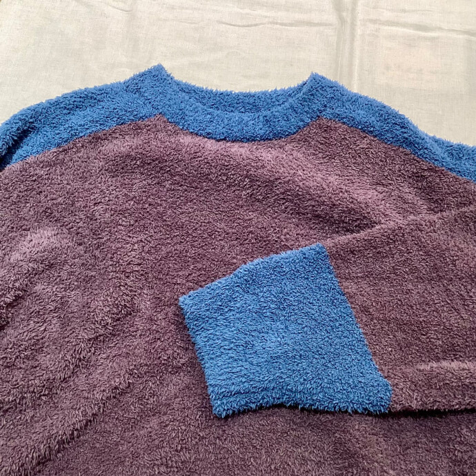 ネックラインはクルーネックでカジュアルに仕上げました。