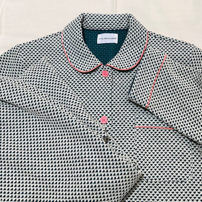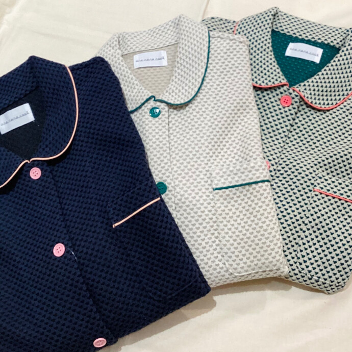 ポコポコとした肉厚な生地で襟は丸襟でかわいらしい印象。
